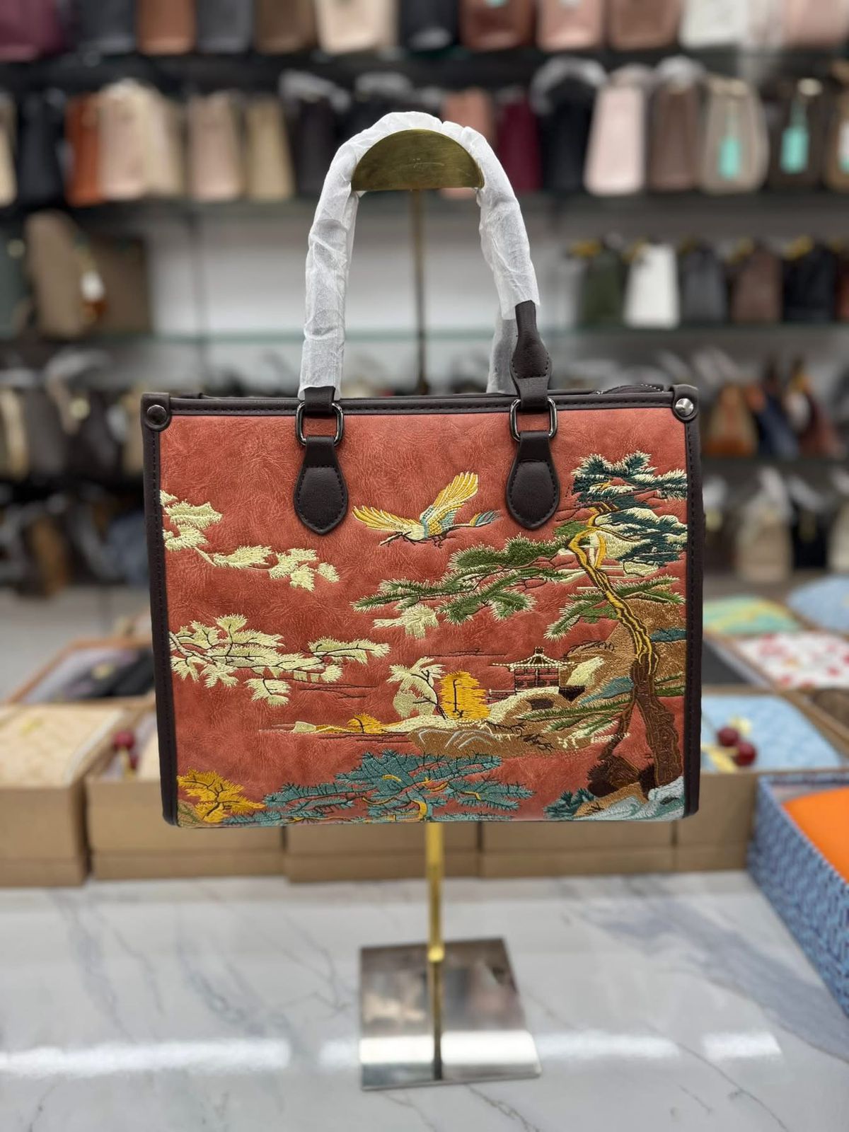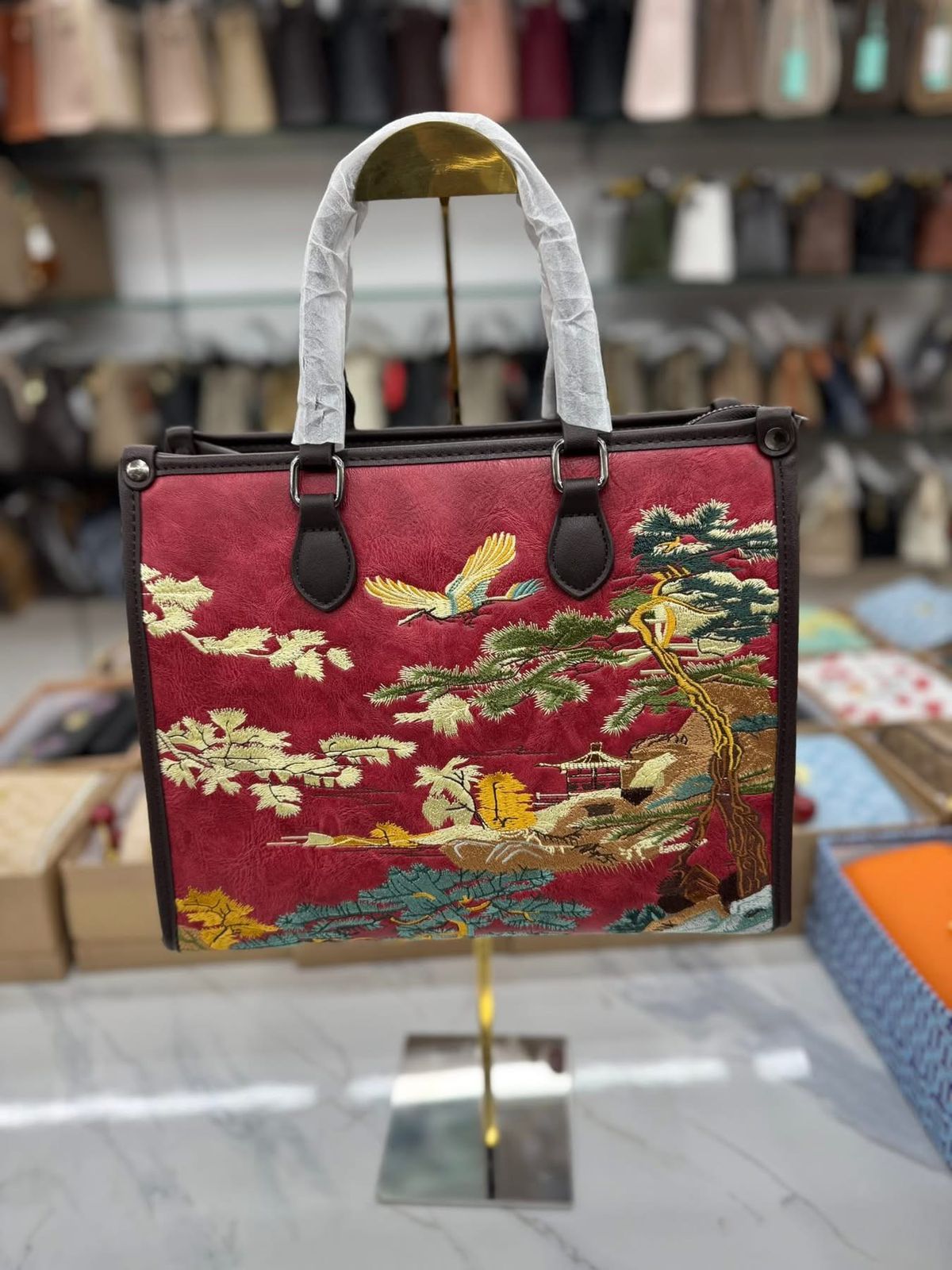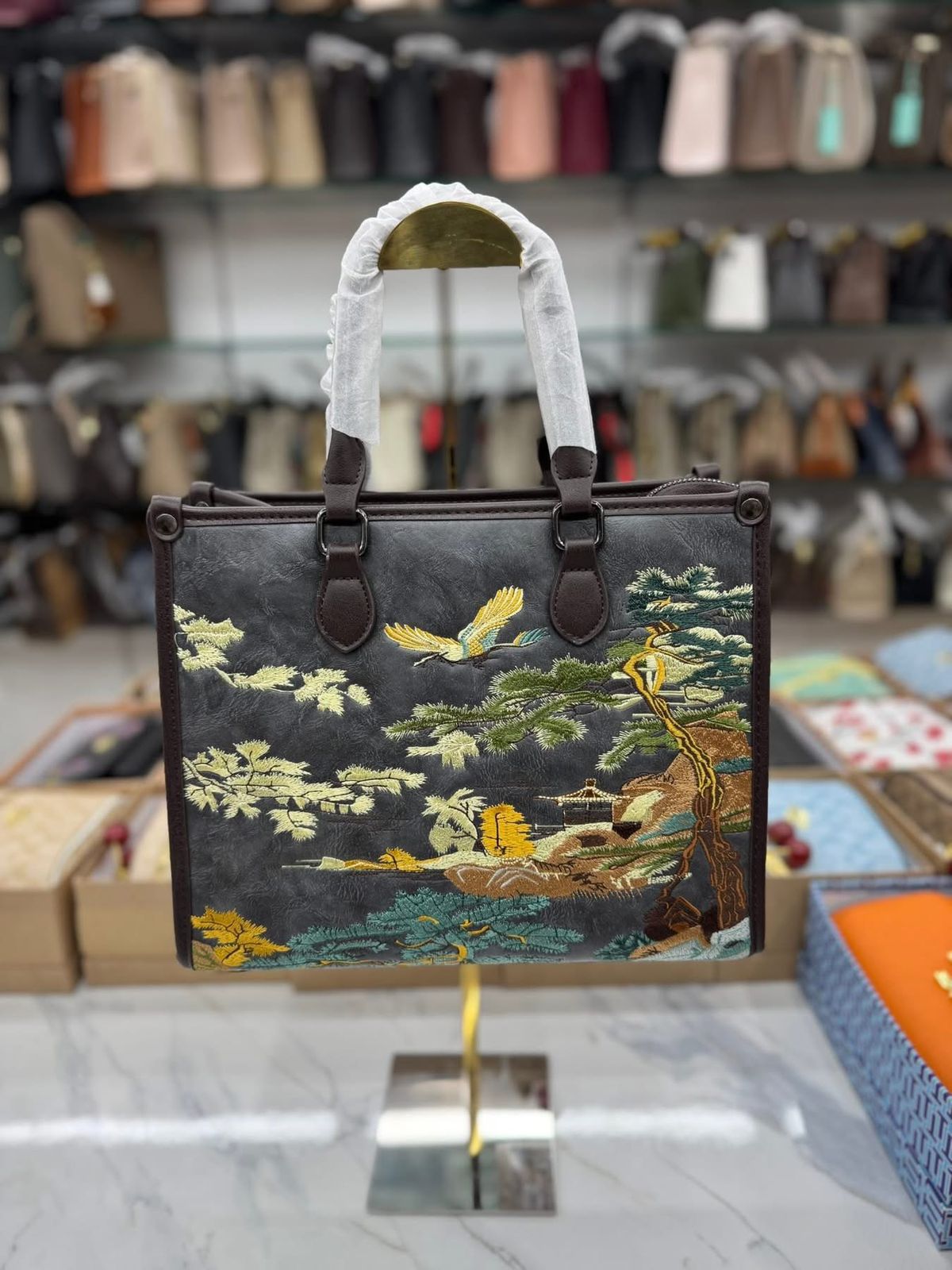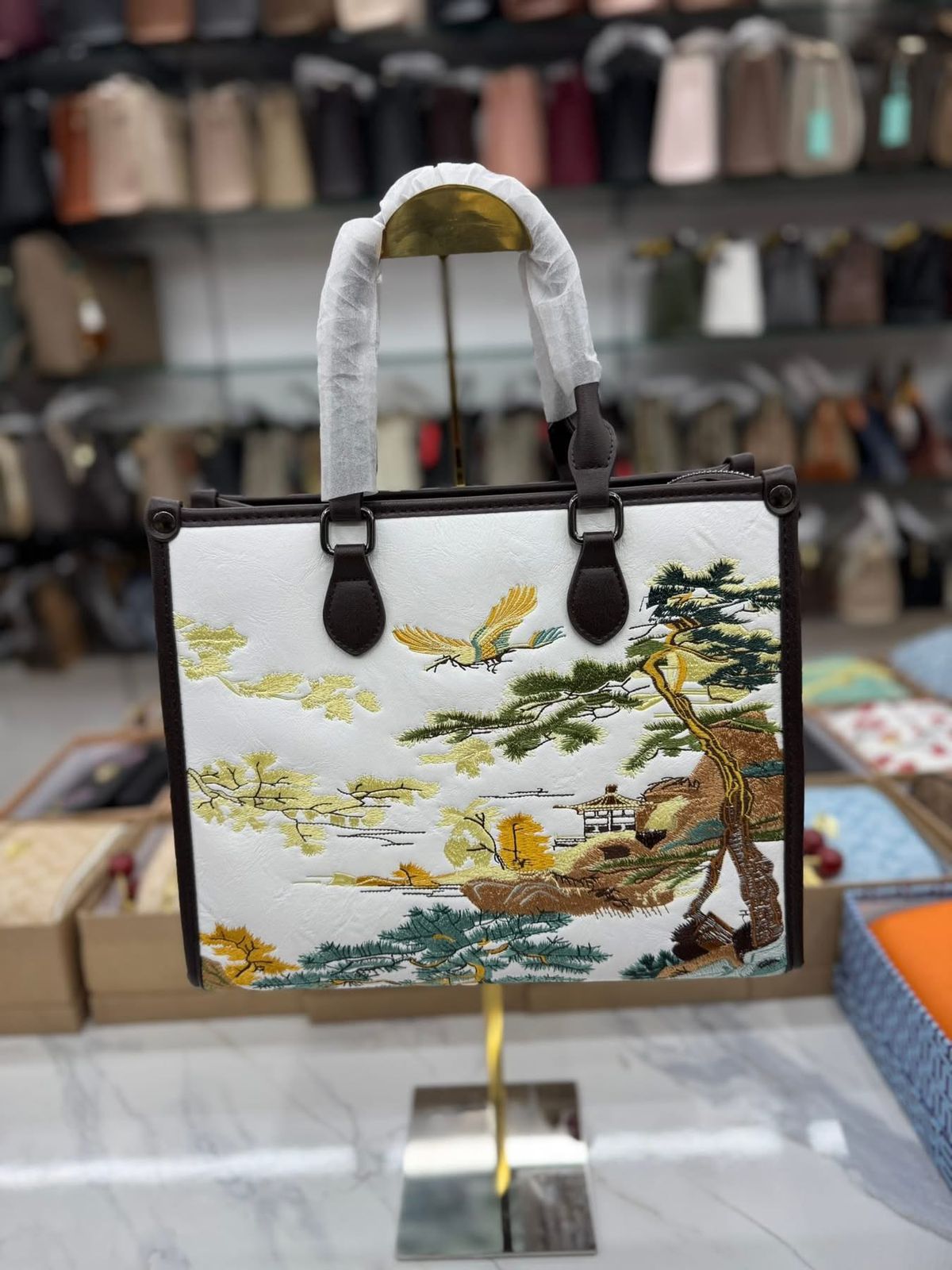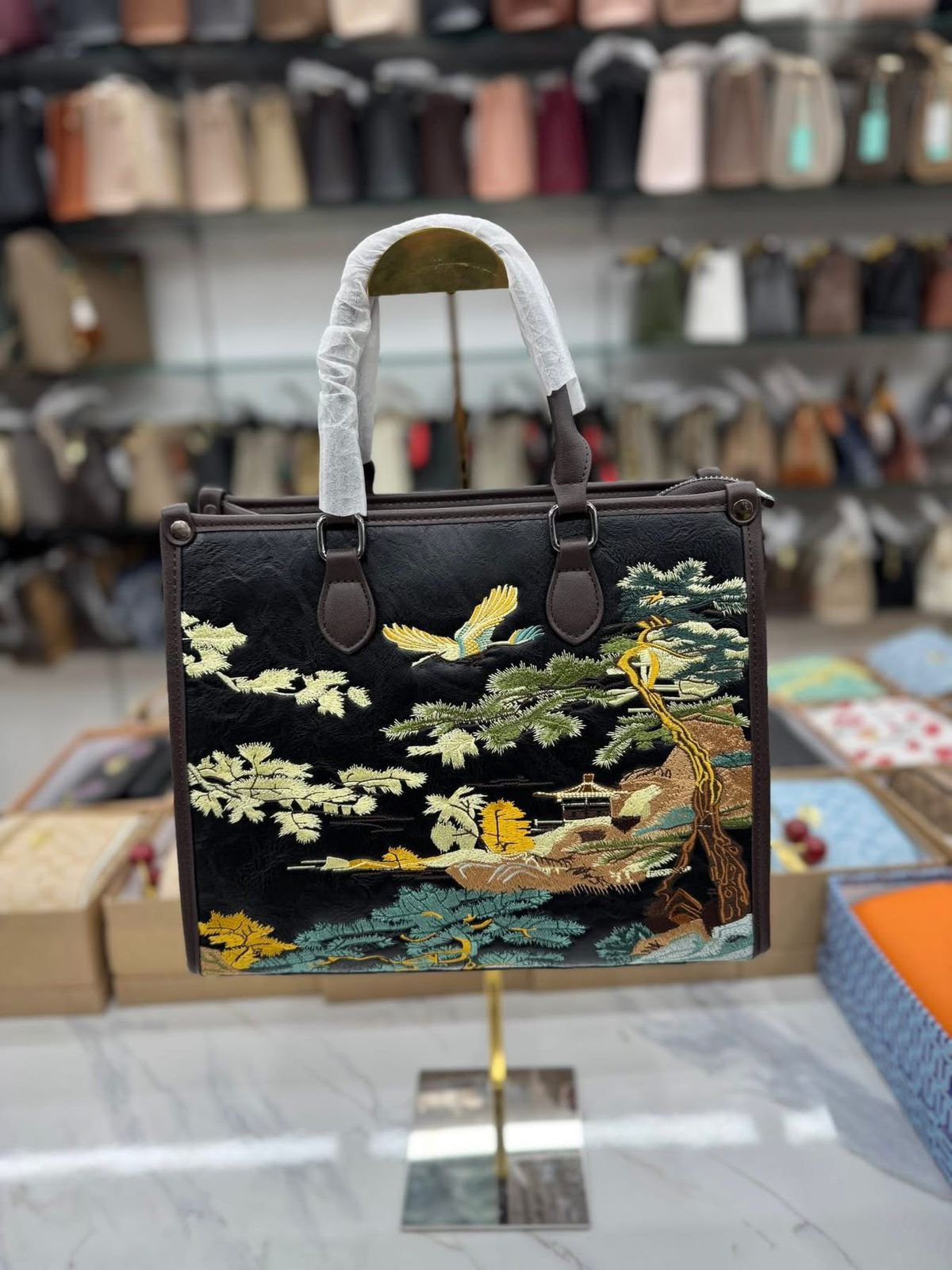 ব্যাগটির সামনে রয়েছে সুন্দর আর্ট-ইন্সপায়ার্ড সূচিকর্ম—পাখি, গাছ আর নেচার থিমের নিখুঁত কাজ যা একে দিয়েছে প্রিমিয়াম ও ইউনিক লুক।
